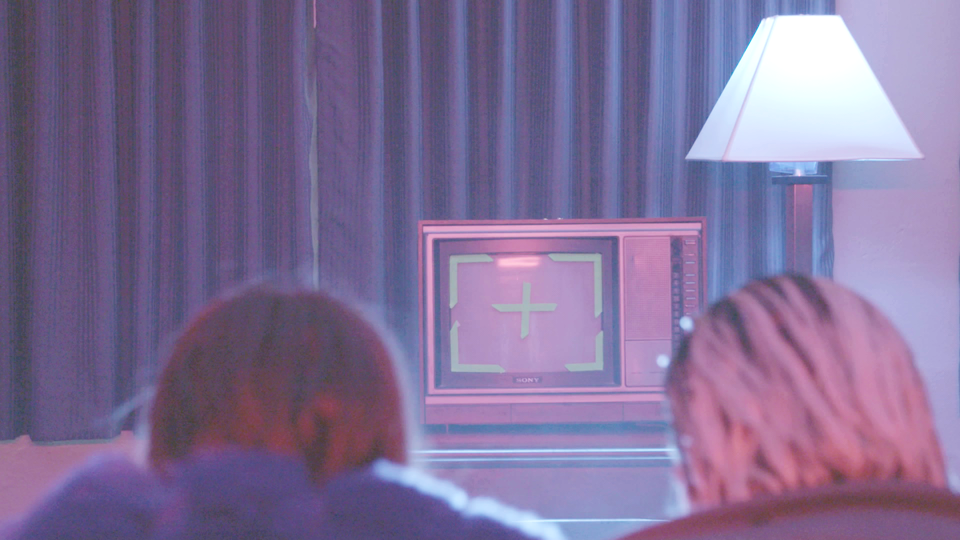 TELEVISION SET SCREEN MASKED AND FOOTAGE LINKED TO TRACKING.