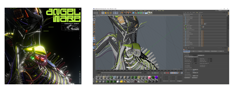 Original artwork and C4D file by external collaborator. Using a similar method to the Angelware project, I re-textured and animated the 3D model in Element 3D within After Effects to speed up the production process. I synced these animations to the track and edited them into a full track video.